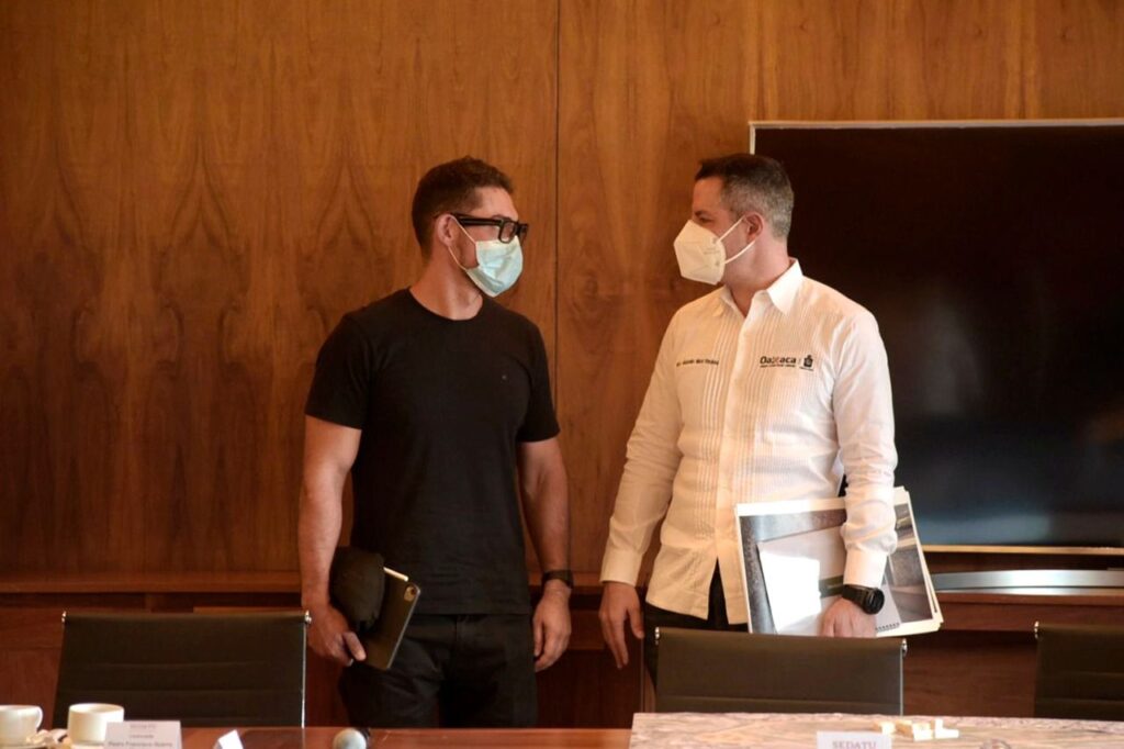Oaxaca de Juárez, Oax., 20 de noviembre de 2021.- En reunión con el secretario de Desarrollo Agrario Territorial y Urbano (Sedatu), Román Meyer Falcón, el gobernador Alejandro Murat Hinojosa reconoció el respaldo del Gobierno Federal para acordar el arranque de los trabajos de rehabilitación de la zona de comedores en la Central de Abasto, así como de la construcción de las instalaciones del Archivo General Agrario (AGA), en la capital oaxaqueña.
