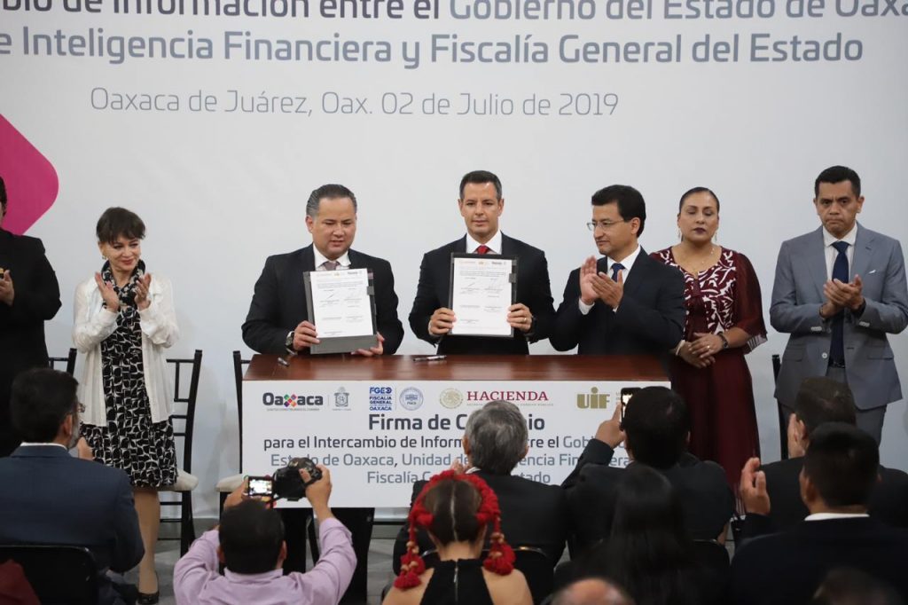 En presencia de Santiago Nieto Castillo, titular de la UIF, el Ejecutivo del Estado celebró la firma de este convenio que permitirá crear en lo posterior la Unidad Patrimonial y de Inteligencia Financiera del Estado. “Con el ánimo de coadyuvar y rendirle cuentas a la sociedad oaxaqueña”.