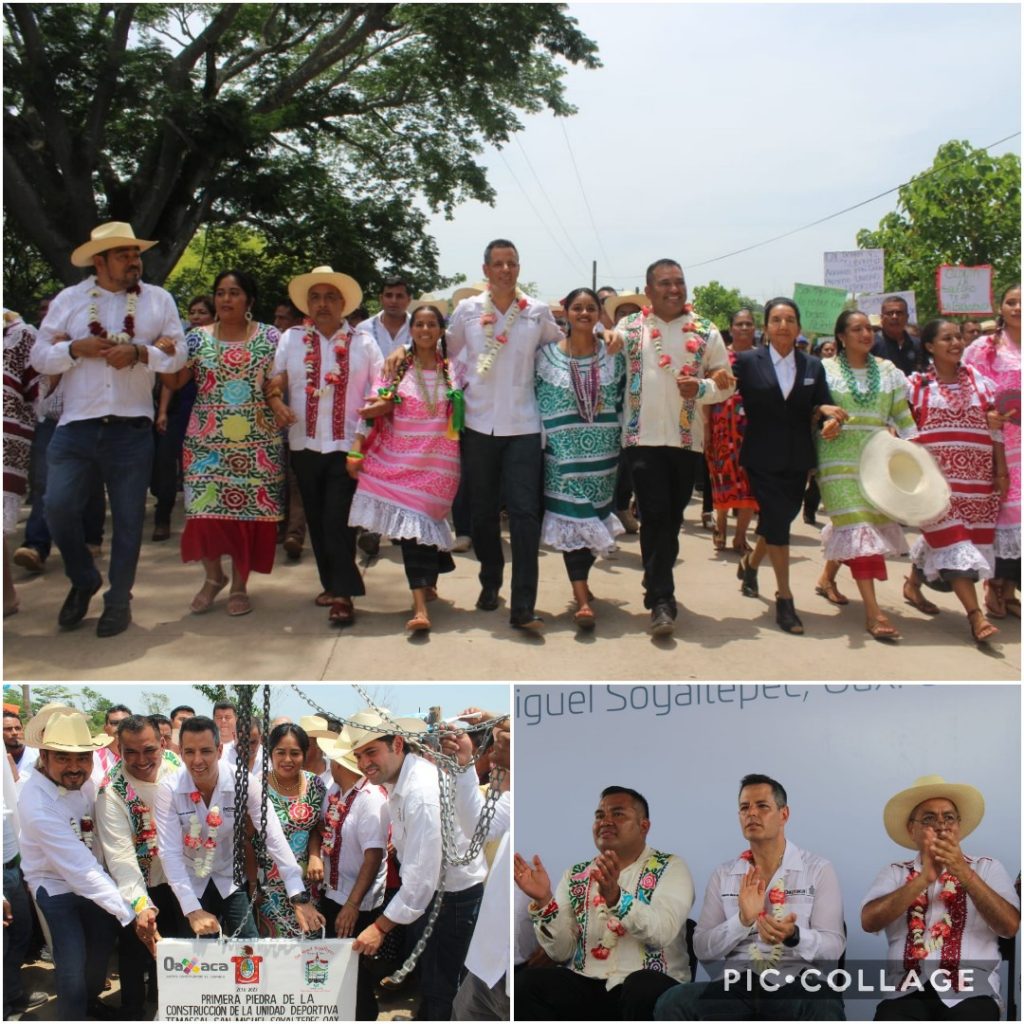 Acompañado del presidente municipal de este lugar, Nazario Antonio Hernández Velásquez, el Mandatario Estatal colocó la primera piedra de lo que será la Unidad Deportiva de Soyaltepec, con la cual se busca incentivar el deporte y la actividad física entre los habitantes de este lugar, principalmente en jóvenes y niños.