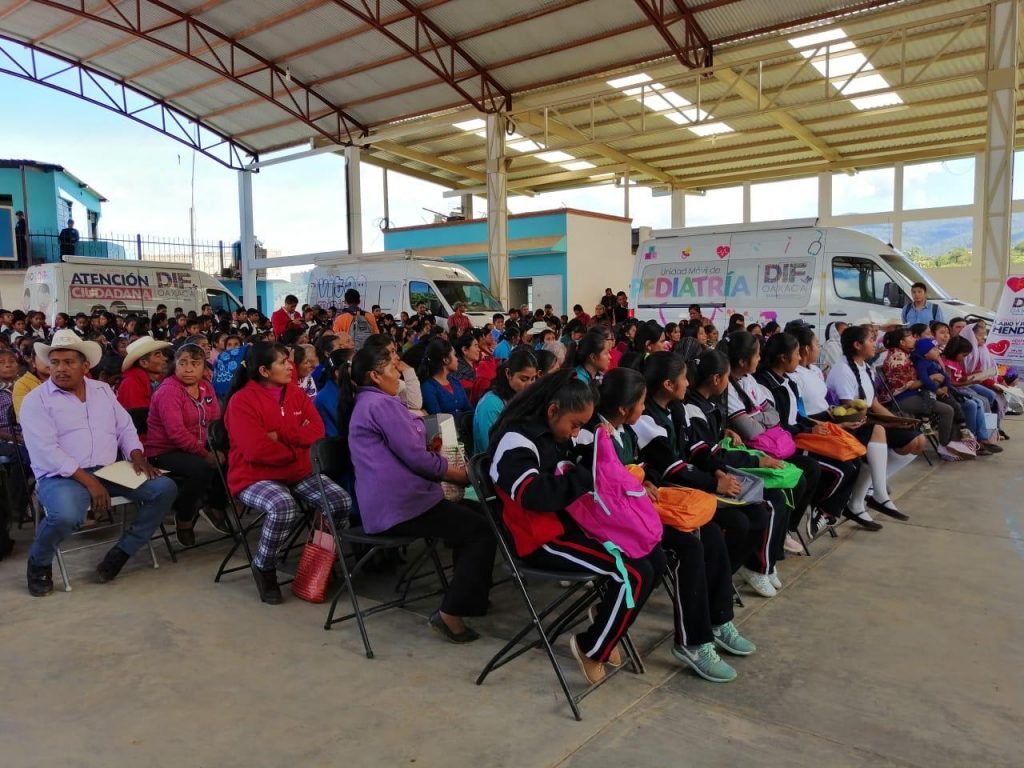 Santos Reyes Pápalo, Oaxaca. 10 de octubre del 2019. Como preámbulo al final de la sexta etapa de la Caravana DIF, en la región de la Cañada, y con una inversión de $459,066.00, este jueves el equipo de unidades móviles visitó el municipio de Santos Reyes Pápalo, en donde brindó, como durante toda la gira, atención en salud a las familias de la localidad y comunidades aledañas.