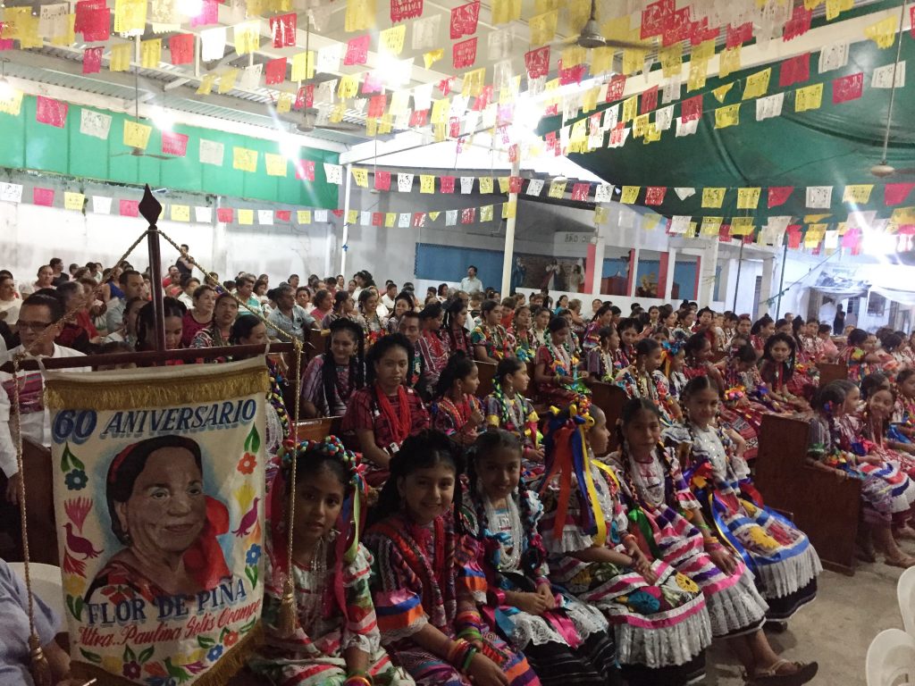 Tuxtepec, Oaxaca.- Ataviadas con sus coloridos huipiles y sus trenzas con listones multicolores, las 36 señoritas que integran la delegación “Flor de Piña” así como la delegación infantil asistieron a la misa a la que año con año escuchan como creyentes para pedir por un viaje, una buena estancia y una buena presentación en la ciudad de Oaxaca durante las fiestas de la Guelaguetza.