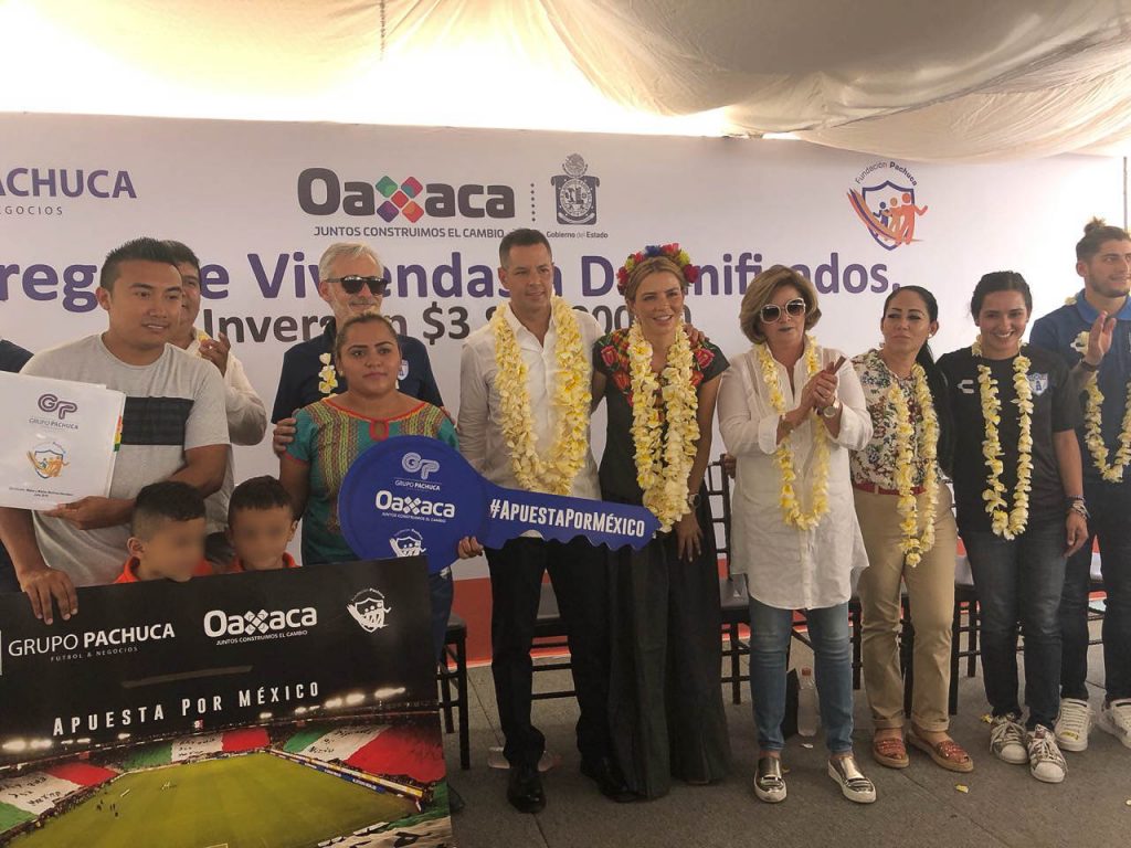 En este marco, el Jefe del Poder Ejecutivo entregó reconocimientos a integrantes de la Escuela Filial Tuzos “Matías Romero” y al Centro de Formación Pachuca “Juchitán”, por gestionar el apoyo para la construcción de las viviendas, toda vez que las familias resultaron beneficiadas al tener a integrantes inscritos en sus instituciones.