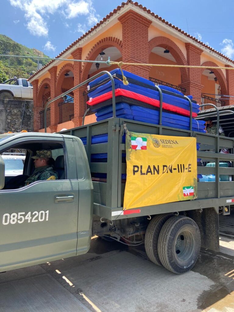 En San Juan Ozolotepec con el apoyo de la Sedena, se instaló un albergue para la atención de las familias damnificadas