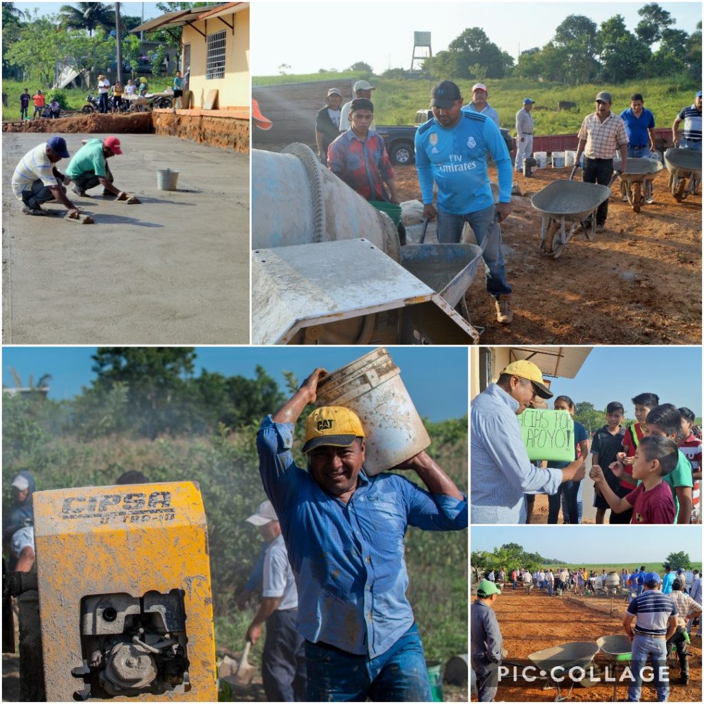 Con anterioridad, los vecinos de esta colonia hicieron trabajos previos para que este sábado se pudiera llevar a cabo este tequio con el que se construyó la cancha de usos múltiples, en la que se utilizaron 7 toneladas de cemento, de estas 6 puso el Gobierno Municipal y 1 tonelada los habitantes así como 4 viajes de graba.
