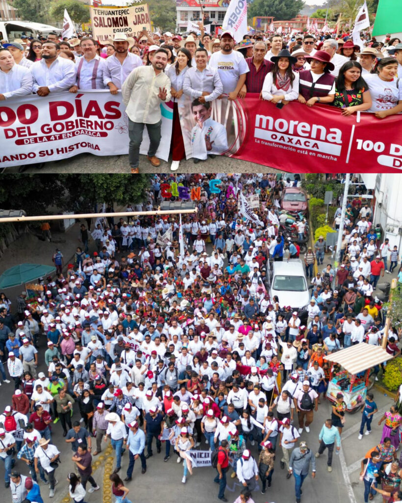 En una marcha donde se contó con la asistencia de 20 mil oaxaqueñas y oaxaqueños, el Comité Ejecutivo Estatal de Morena Oaxaca recorrió las principales calles de la capital para celebrar en un tradicional calenda los primeros 100 días del gobierno transformador.