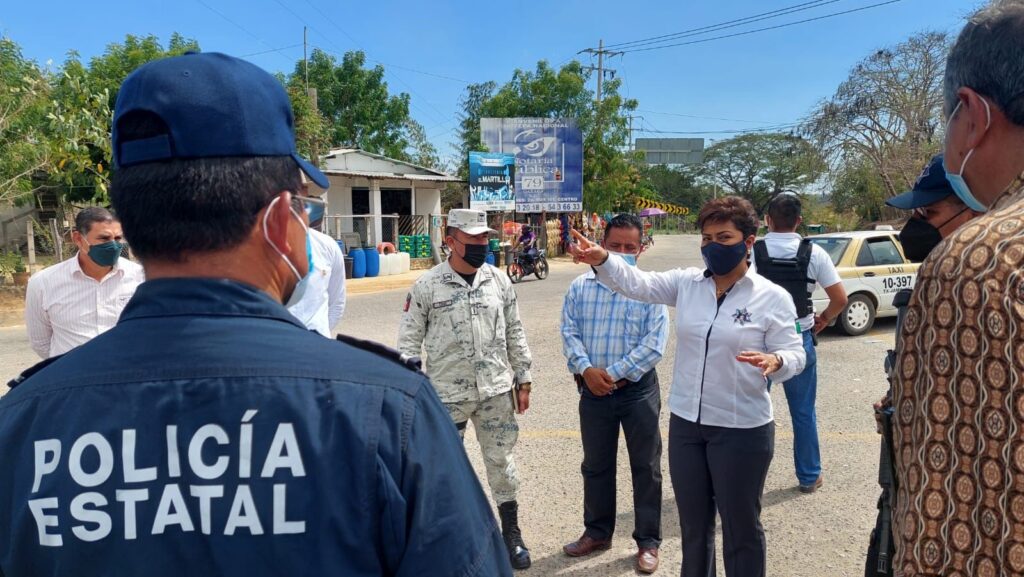 Región de la Costa, Oax. 29 de enero de 2022.- Para dar seguimiento oportuno a la estrategia de seguridad estatal que encabeza el gobernador Alejandro Murat Hinojosa; la encargada del despacho de la Secretaría de Seguridad Pública de Oaxaca (SSPO), Dalia Baños Noyola, realizó una gira de trabajo en la región de la Costa.