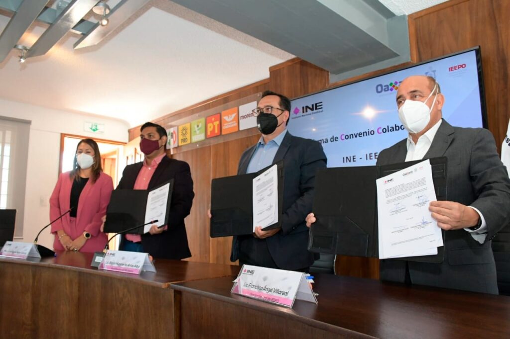 El director general del IEEPO, Francisco Ángel Villarreal y el vocal ejecutivo del INE, Edgar Humberto Arias Alba, firmaron un Convenio de Apoyo y Colaboración