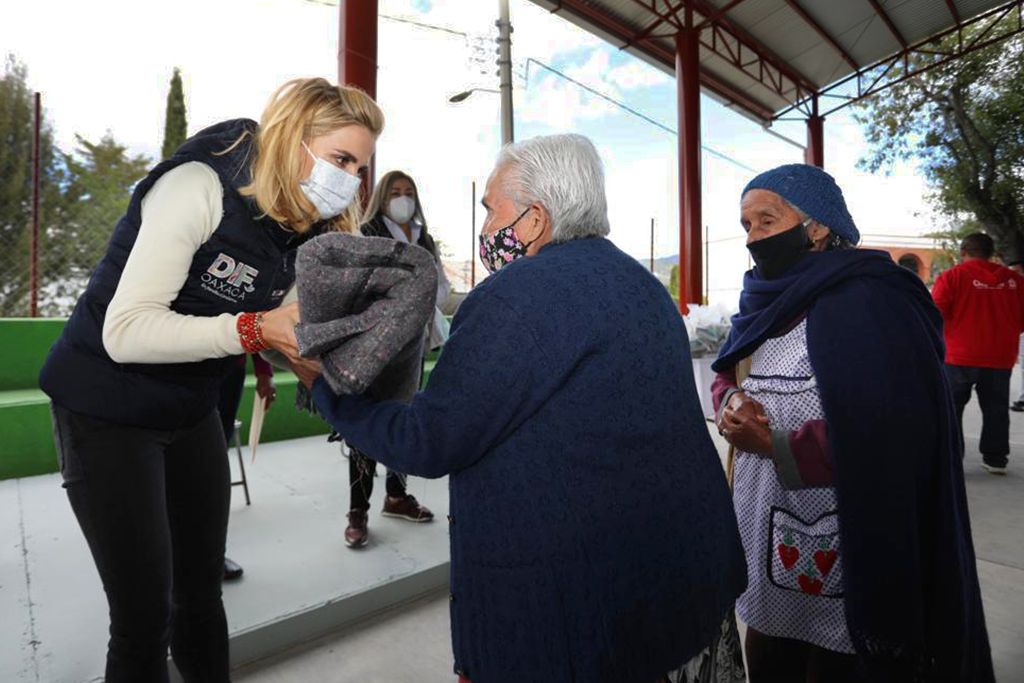 Por lo anterior, y con el fin de tomar precauciones y proteger la salud de las familias oaxaqueñas en esta temporada de bajas temperaturas, la esposa del gobernador, Ivette Morán, entregó cobertores, medicamentos y kits de artículos de higiene personal a las y los habitantes de este Municipio, asimismo realizó la entrega de obsequios con motivo de estas fiestas decembrinas a las y los niños de esta comunidad.