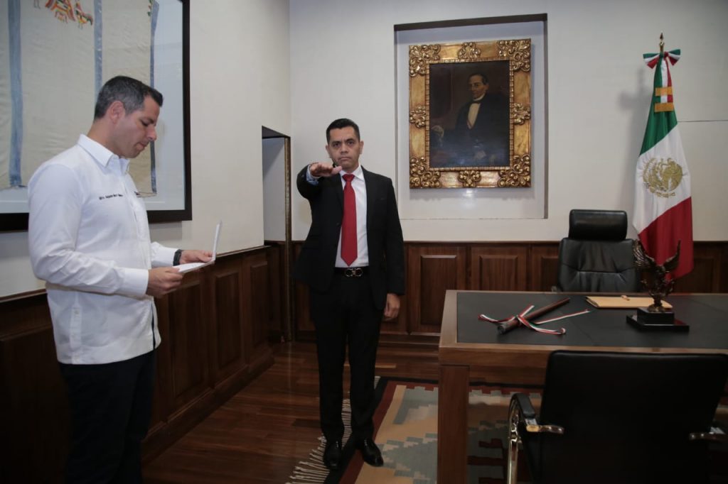En el salón de Gobernadores del Palacio de Gobierno, el Mandatario Estatal expresó que este ajuste en el equipo es para reforzar la estructura y dar seguimiento a las tareas de seguridad que demanda la ciudadanía oaxaqueña.