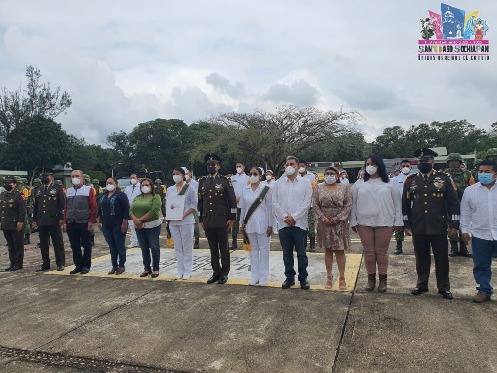 Santiago Sochiapan. -El Batallón 45 de la 29 zona militar invitó a la alcaldesa municipal, Mary López para ser participe de la condecoración a personal médico que estuvo al frente en la pandemia Covid-19.