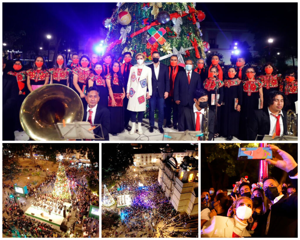 Durante el encendido del árbol monumental de navidad, la banda filarmónica Alma Oaxaqueña, así como el Coro de la Ciudad, amenizaron esta actividad. De igual manera, las y los niños de las Casas Hogar del DIF Oaxaca asistieron como invitados especiales.