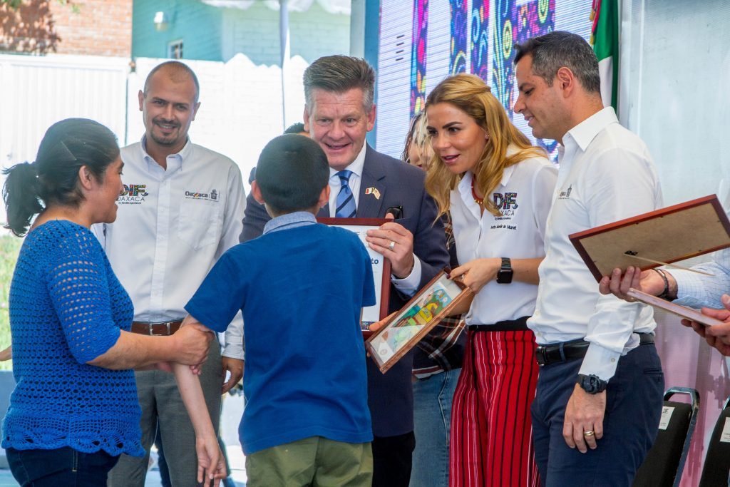 En el marco del evento se reconoció y agradeció públicamente a los aliados en este tema, por lo que el gobernador Alejandro Murat y su esposa Ivette Morán entregaron un reconocimiento y un dibujo elaborado por Alan Hernández –niño con autismo- a las instituciones donantes: Cirugía Móvil Internacional, A.C., Monte de Piedad del Estado de Oaxaca y Servicios Caritativos SUD A.C.