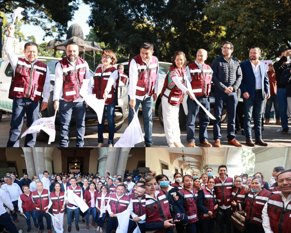 Oaxaca de Juárez, Oax. 12 de enero de 2023. Desde el Zócalo de la Ciudad capital, el Gobernador del Estado, Salomón Jara Cruz, dio el banderazo de salida a 32 de las 107 Brigadas Territoriales por la Salud, que recorrerán las ocho regiones de la entidad, con la finalidad de incrementar la cobertura integral de los servicios de salud del primer nivel de atención, y mejorar las condiciones en la población sin acceso a esta atención.