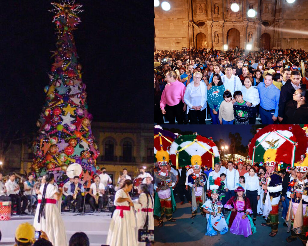 Enciende Salomón Jara “Árbol de la Regeneración de la Esperanza” en el Zócalo de Oaxaca