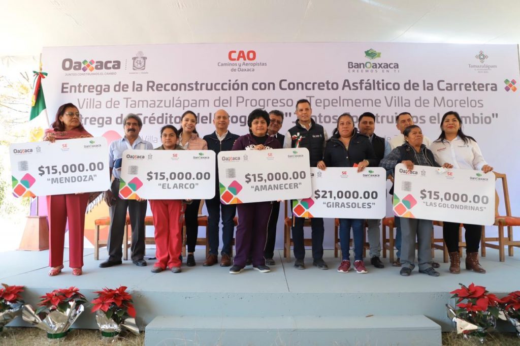 Como parte de la atención integral del Gobierno de Oaxaca para el desarrollo comercial y económico, el Gobernador entregó en este mismo municipio 104 créditos -cinco de manera simbólica- en beneficio de Micro, Pequeñas y Medianas Empresas (Mipymes) oaxaqueñas, como parte del programa Juntos Construimos el Cambio, con una inversión de 312 mil pesos por parte de BanOaxaca.