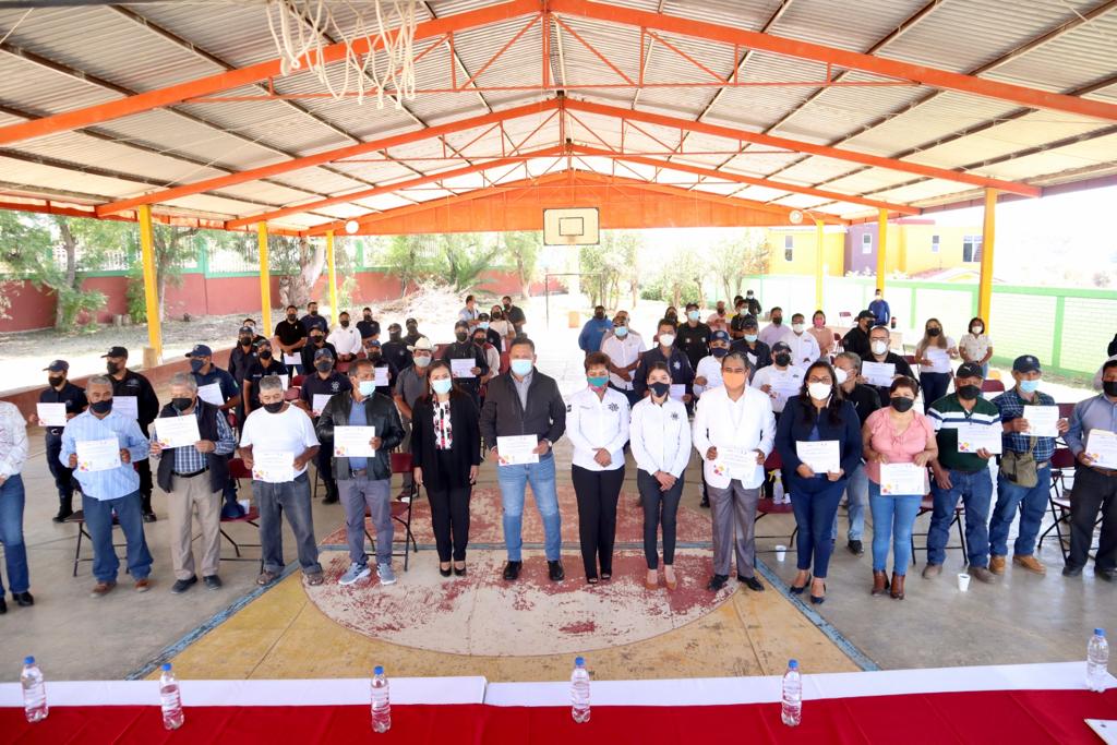 San Pablo Etla, Oax., 20 de diciembre de 2021.- Continuando con las estrategias del eje Municipio Seguro del Gobierno del Estado que encabeza Alejandro Murat Hinojosa, a través de la Dirección General de Prevención del Delito y Participación Ciudadana, adscrita a la Secretaría de Seguridad Pública de Oaxaca (SSPO), se realizó por primera vez la entrega de constancias de capacitación y toma de protesta a integrantes de las Unidades Municipales de Prevención del Delito de al menos 14 municipios de Valles Centrales.