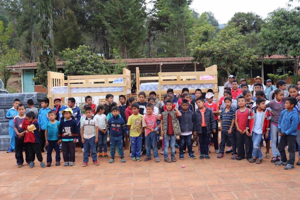 Este martes, a nombre de la esposa del Gobernador Alejandro Murat Hinojosa, personal del DIF Oaxaca y del IEEPO entregó 66 colchones, 33 literas, botes de pintura, paquetes de material de aseo, deportivo y de oficina, 66 colchonetas, igual número de almohadas, juegos de sábanas y kits personales, además de instrumentos para dos bandas de guerra y una computadora.