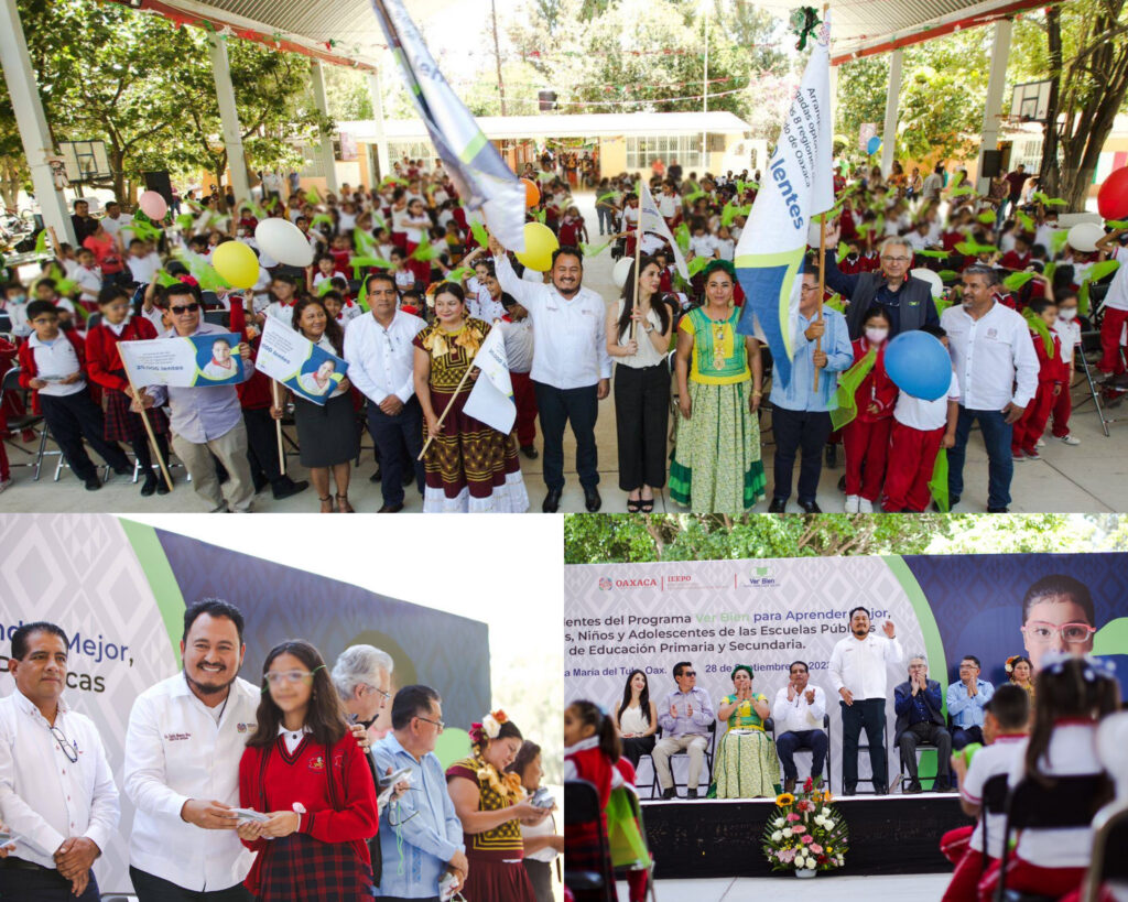 En un primer evento realizado en la explanada municipal de San Antonio de la Cal, donde fueron beneficiados 319 alumnas y alumnos de cinco escuelas públicas de esta zona de los Valles Centrales, Montero Pérez destacó el valioso apoyo y colaboración de la Fundación Ver Bien A.C. para garantizar la igualdad de oportunidades de desarrollo y una mejor calidad de vida a la comunidad escolar.
