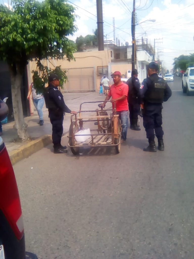 Este individuo estaba a bordo de un triciclo de carga y traía con él a una mujer y a un menor de edad por lo que le requirieron se detuviera, sin embargo hizo caso omiso, poco más adelante le volvieron a pedir que hiciera un alto y fue entonces que acató la instrucción, los elementos se dirigieron a él, se identificaron como elementos de la Policía Municipal Preventiva y le solicitaron su identificación.