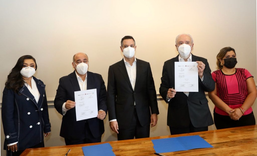 Con la presencia del gobernador Alejandro Murat Hinojosa, el director del IEEPO, Francisco Ángel Villarreal y el secretario general del STIRTT, Ricardo Acedo Samaniego formalizaron Convenio de Colaboración