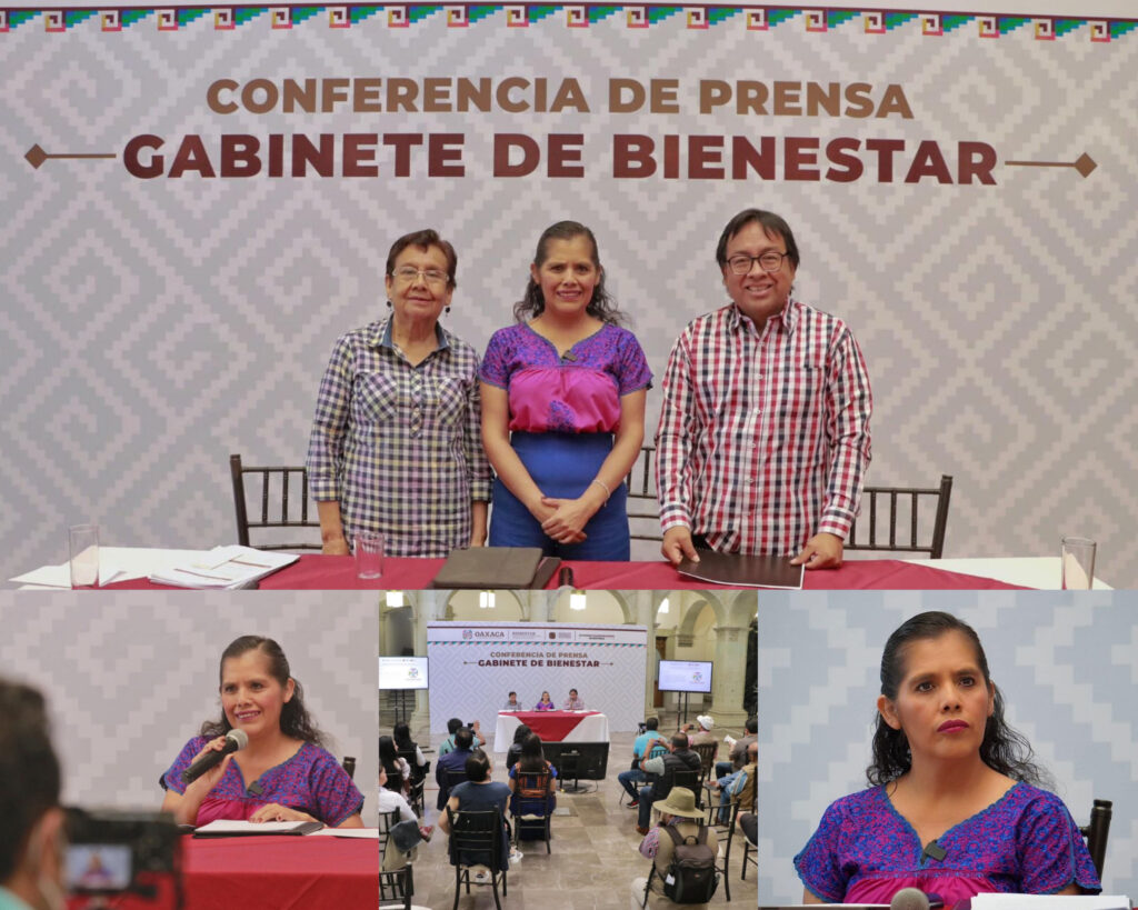 Lo anterior durante la conferencia de prensa “Gabinete de Bienestar”, que encabezó la Dra. Laura Estrada Mauro junto con la titular de la Secretaría de Interculturalidad, Pueblos Indígenas y Afromexicanas, Berta Ruth Arreola Ruiz, y el titular de la Secretaría de las Culturas y Artes de Oaxaca, Víctor Cata, en la cual informaron sobre las acciones impulsadas desde sus diferentes instancias de gobierno para el avance de la transformación del estado.