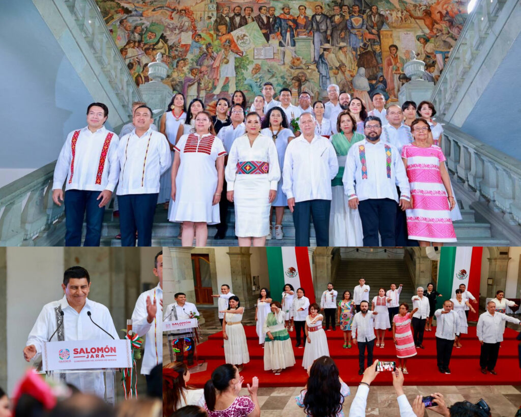 Teniendo como sede el Palacio de Gobierno, el mandatario estatal tomó protesta de ley a secretarios, secretarias, Jefe de Gabinete y titular de la Consejería Jurídica y Asistencia Legal, conforme a lo dispuesto por el artículo 140 de la Constitución Política del Estado de Oaxaca.