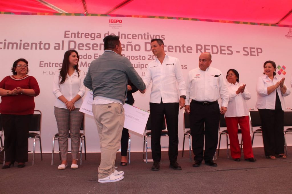 Durante este acto también entregó 34 millones de pesos en apoyos del programa “Reconocimiento al Desempeño Docente (REDES-SEP)”, correspondientes al periodo enero-agosto de 2019, en beneficio de dos mil 961 maestros de educación primaria que trabajan en mil 423 localidades ubicadas en 316 municipios de todo el estado.