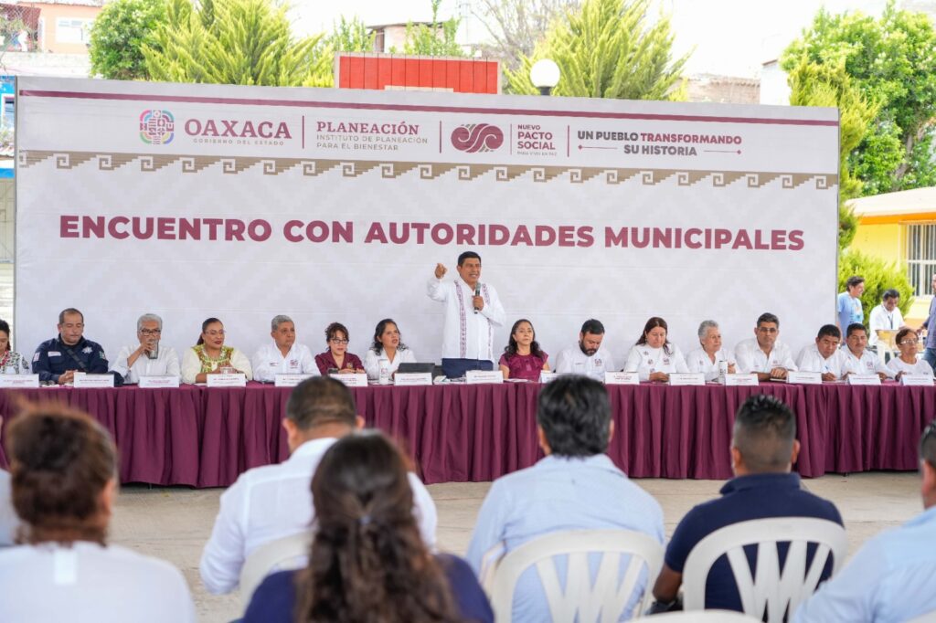 En presencia de titulares de todo el gabinete gubernamental, y acompañado de la presidenta honoraria del Sistema para el Desarrollo Integral de la Familia (DIF) Oaxaca, Irma Bolaños Quijano, el Gobernador explicó que se han realizado 15 encuentros distritales y en 10 o 12 días se efectuarán los 10 restantes para atender a la totalidad de autoridades municipales sin distinción de colores ni credos, porque ningún municipio será marginado por este gobierno de oaxaqueños.