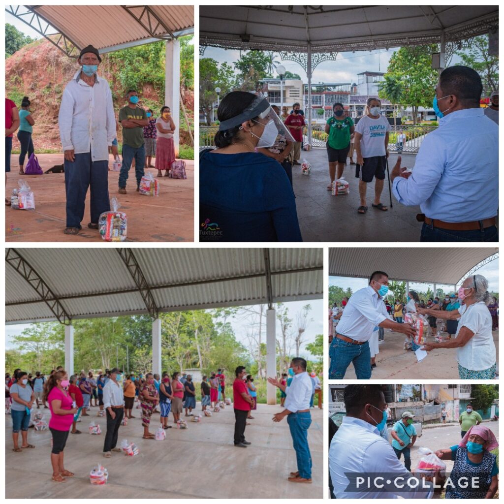 En la entrega de ayuda alimentaria este fin de semana e inició de la presente, se favoreció a familias de las comunidades de Agua Fría Piedra del Sol, Rancho La Montaña, Ojo de Agua, Pueblo Nuevo Ojo de Agua, San Felipe de la Peña; así como las colonias La Moderna, Las Maravillas, 12 de Julio, fraccionamientos Papaloapan, Las Palmas y el ejido Adolfo López Mateos, además de otorgar esta asistencia a músicos y choferes del municipio.