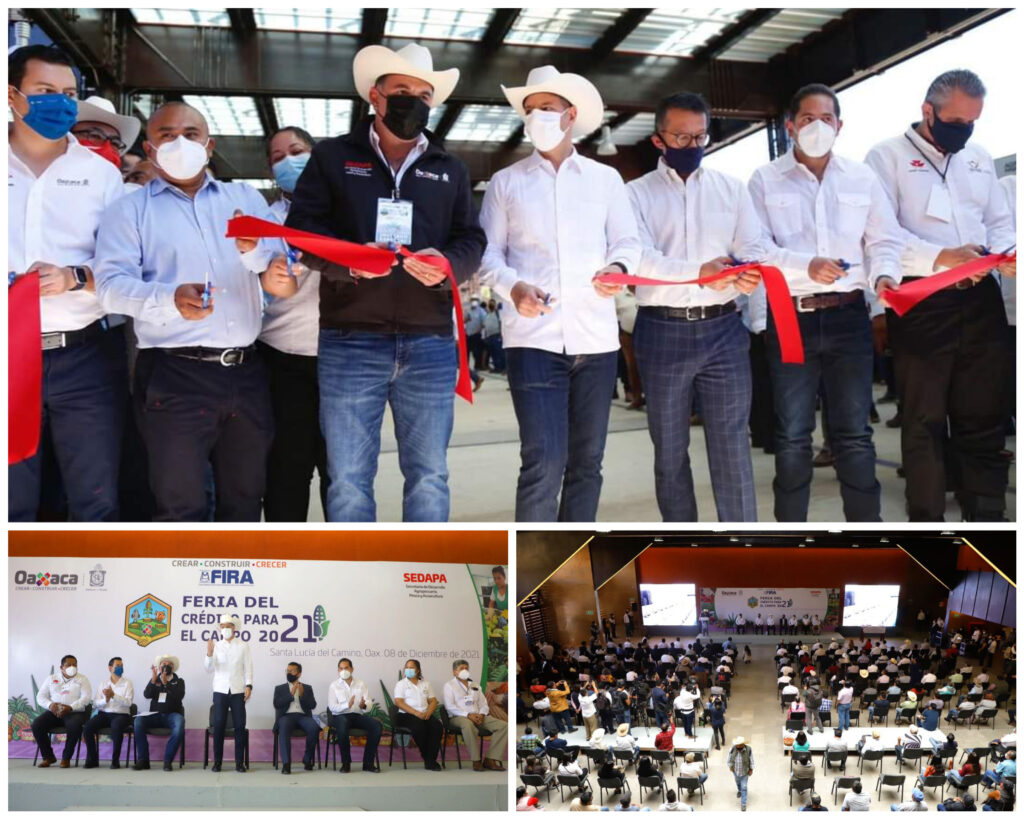 Oaxaca de Juárez, Oax. 8 de diciembre de 2021. Para fomentar el crédito al sector agroalimentario y abatir las barreras de acceso a servicios financieros de las y los productores con énfasis en los de menos escala y dar a conocer los productos financieros y alternativas de financiamiento para el desarrollo de proyectos del sector agroalimentario y rural en Oaxaca, el gobernador Alejandro Murat Hinojosa, inauguró la Feria del Crédito para el Campo 2021.