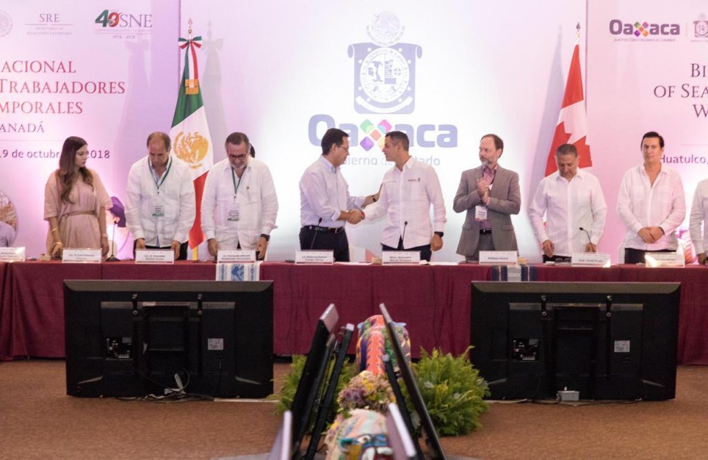 El Mandatario oaxaqueño celebró este encuentro que reunió a cónsules y empleadores de Canadá para garantizar la contratación de mexicanos de manera segura, legal y ordenada.