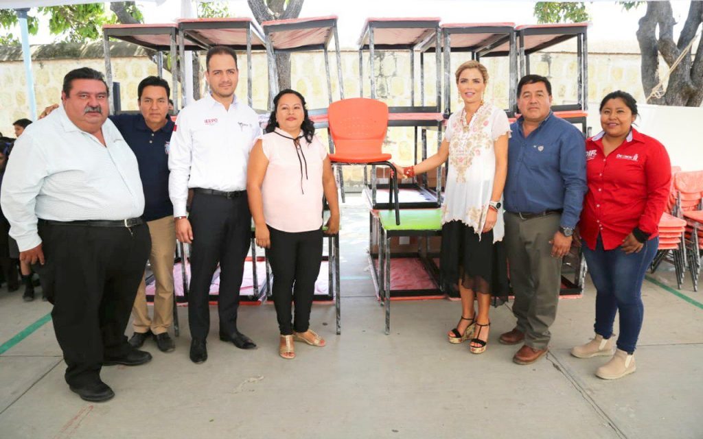 Ivette Morán de Murat entrega equipo mobiliario en la Escuela Primaria “Benito Juárez”