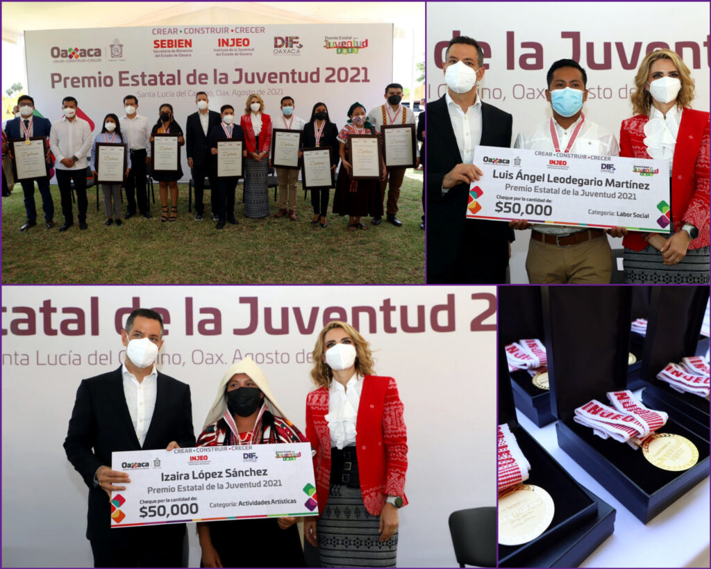 El Gobernador y la Presidenta del DIF Oaxaca entregaron el Premio Estatal de la Juventud 2021 a 11 jóvenes ganadores