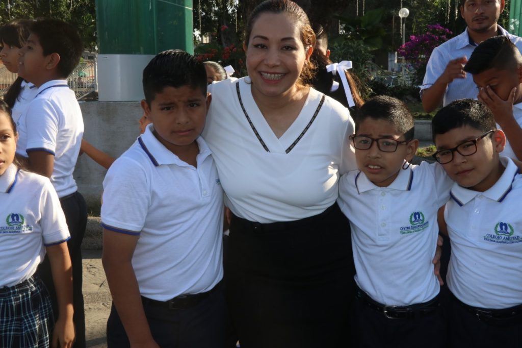 Tuxtepec, Oaxaca .- La Presidenta del DIF Tuxtepec, María Luisa Vallejo García, presidió este lunes la ceremonia cívica que honra a los símbolos patrios nacionales y que en esta ocasión estuvo dirigido por estudiantes de educación primaria del Colegio Amistad. En este acto, el Gobierno Municipal que encabeza el contador Fernando Bautista Dávila convocó a su equipo de trabajo a seguir dando más por Tuxtepec, a levantar la mano por su tierra y a seguir engrandeciendo a Oaxaca y a México.
