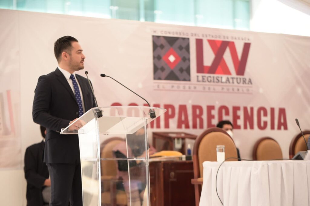 San Raymundo Jalpan, Oax. 20 de enero de 2022. En el marco de la Glosa del Quinto Informe de Gobierno del mandatario estatal Alejandro Murat Hinojosa, el secretario de Movilidad, Arturo López Sorroza, compareció este jueves ante la Comisión de Movilidad, Comunicaciones y Transportes del Congreso del Estado de Oaxaca, en el que destacó las acciones realizadas durante el ejercicio 2021 con el objetivo de garantizar una movilidad segura y sostenible para las y los oaxaqueños.