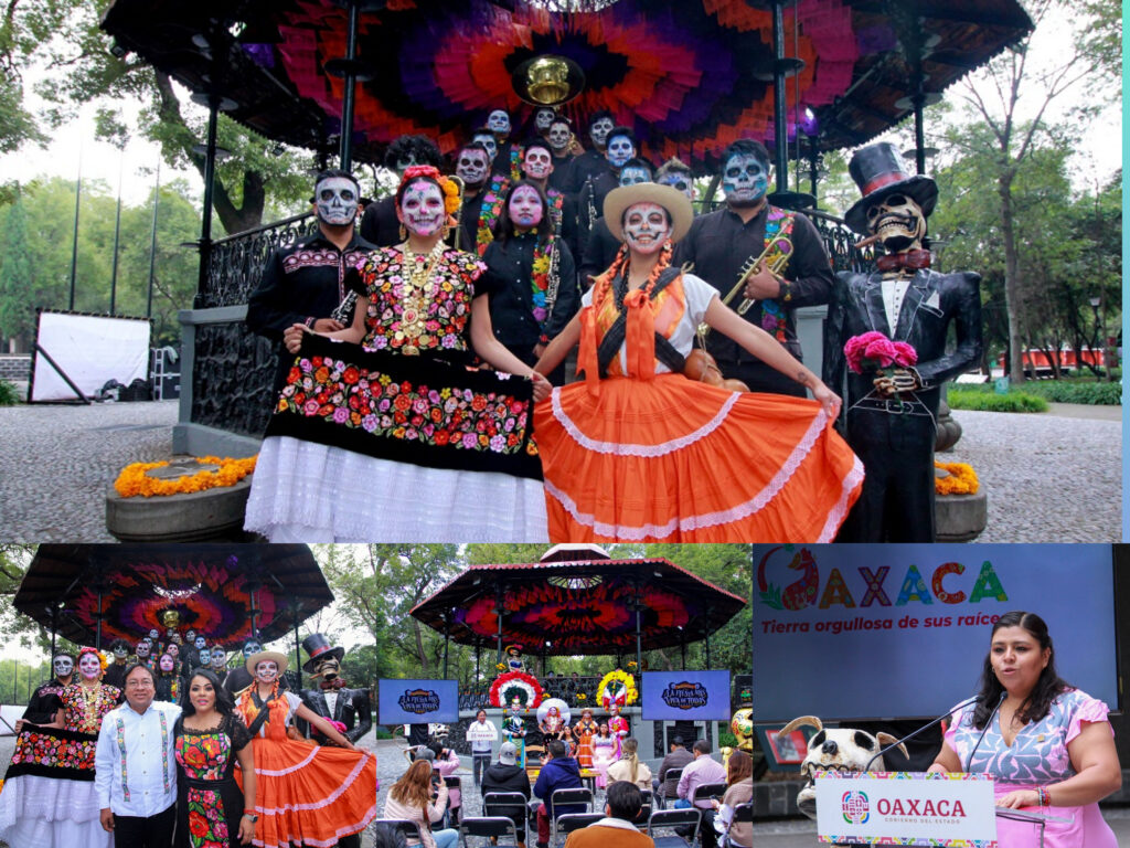 Ciudad de México. 17 de octubre de 2023. Con motivo del Día de Muertos, una de las tradiciones milenarias y más representativas de México, el Gobierno de Oaxaca invitó desde la capital del país, a disfrutar de esta celebración con las más de 20 actividades artísticas y culturales que forman del programa La fiesta más viva de todas, que tendrá lugar del 28 de octubre al 4 de noviembre.
