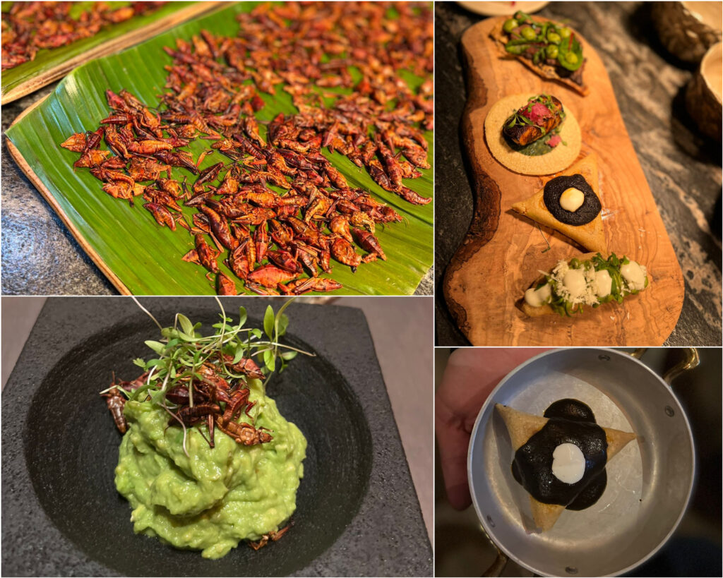 También cocinaron Totopos de maíz con guacamole y chapulines; Sopa de milpa con maíz cacahuacintle, consomé de hongos, chochoyotes y flor de calabaza; Tlayuda con tasajo, verdolagas, frijol y quelites; Tetela de maíz criollo rellena de guajolote y mole negro.