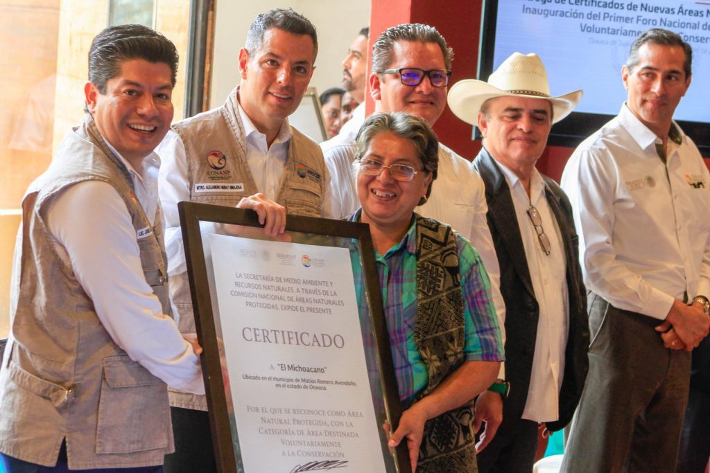 En tanto el Secretario del Medio Ambiente, Energías y Desarrollo Sustentable (Semaedeso), José Luis Calvo Ziga, señaló que Oaxaca es pionero en la iniciativa voluntaria para la conservación de sus recursos naturales, lo que permitió el reconocimiento que expide la Conanp a las comunidades, ejidos o pequeños propietarios que establecieron estas estrategias