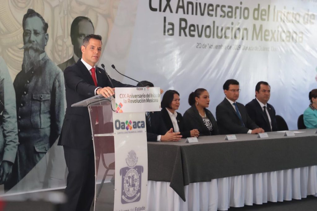 Oaxaca de Juárez, Oax. 20 de noviembre de 2019. Al encabezar la ceremonia conmemorativa por el 109 Aniversario del Inicio de la Revolución Mexicana, el gobernador Alejandro Murat Hinojosa destacó que en la transición política que vive México, Oaxaca reafirma su vocación federalista y se suma al desarrollo de la Nación con la grandeza de su cultura, la fuerza de su gente y sus capacidades productivas.