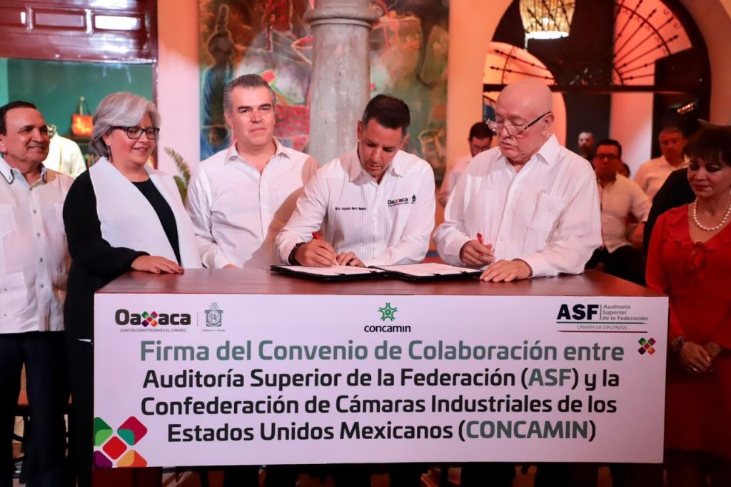 El gobernador Alejandro Murat atestiguó la firma de un convenio de colaboración entre la Auditoria Superior de la Federación y la Concamin, que contribuirá a mejores prácticas empresariales relacionadas al combate de la corrupción