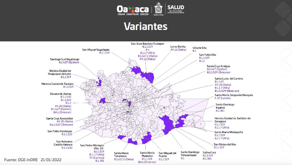Al corte de este viernes, los Servicios de Salud de Oaxaca (SSO) y previa notificación del Instituto de Diagnóstico y Referencia Epidemiológicos (InDRE), han confirmado dos casos más de la variante Ómicron de COVID-19, que en total suman 43 personas infectadas en la entidad.