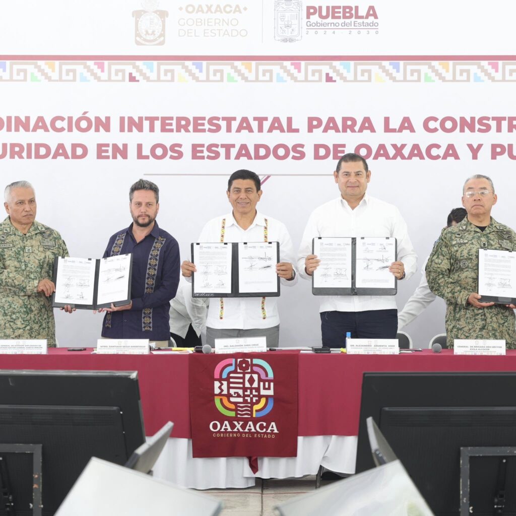 Heroica Ciudad de Huajuapan de León, Oax. 27 de febrero de 2025.- En un hecho sin precedentes, los estados de Oaxaca y Puebla firmaron el Convenio Marco de Coordinación y Colaboración Intergubernamental de Acciones en Materia de Seguridad; alianza que busca blindar las rutas comerciales, proteger los sectores vulnerables y garantizar la paz en ambas entidades, principalmente en la región limítrofe.