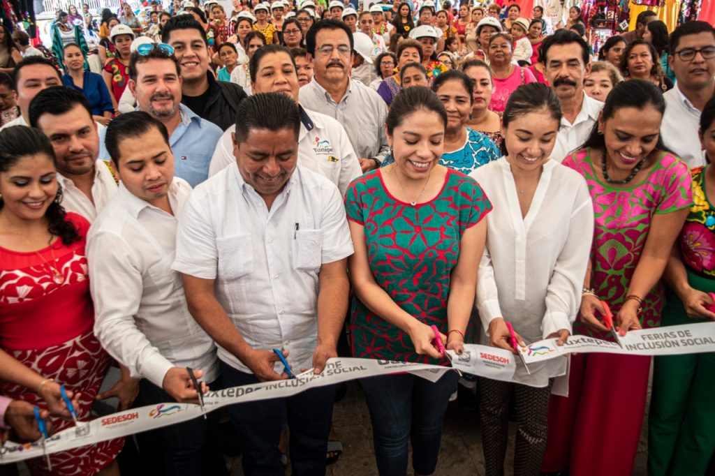 Tuxtepec, Oax.- El presidente municipal, Fernando Bautista Dávila, Edith Yolanda Martínez López y Claritza Ordaz Pineda, Secretaria y Subsecretaria de Desarrollo Social y Humano de Oaxaca, inauguraron la segunda Feria de Inclusión Social Tuxtepec 2019, en el parque Juárez de esta ciudad, en la cual participan 82 artesanos de las 8 regiones del estado.