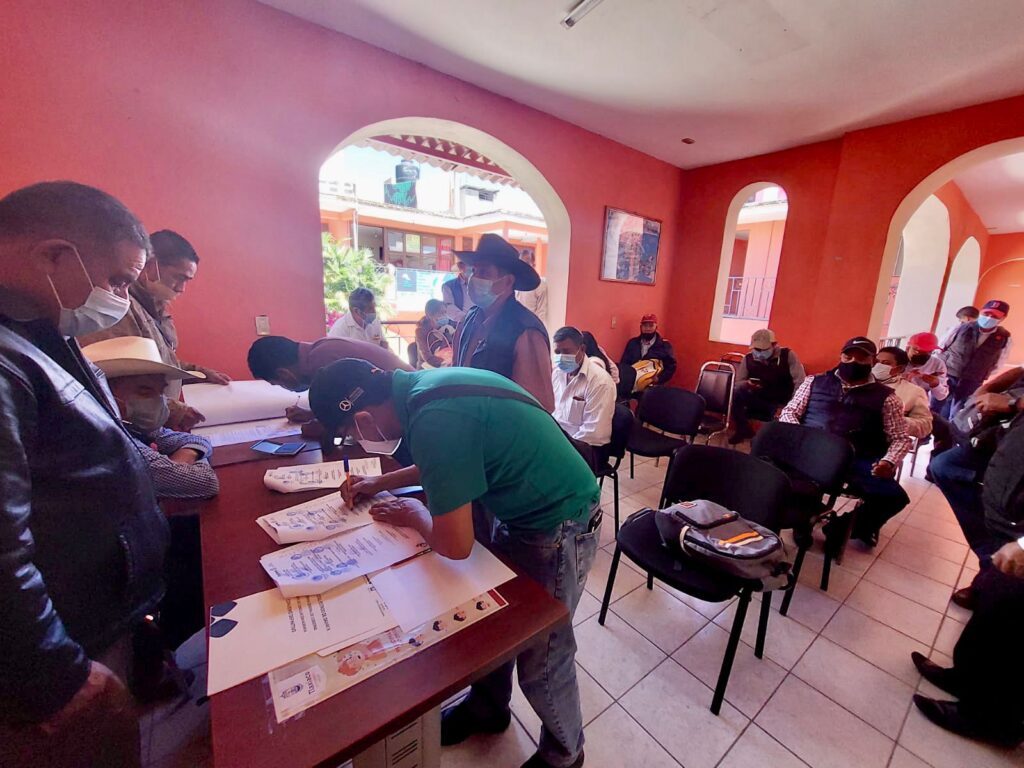 Con la instrucción del secretario general de Gobierno, Francisco Javier García López, el presidente de la Junta de Conciliación Agraria, Rodrigo Jarquín Santos y su personal técnico, se trasladaron al municipio de Tlaxiaco junto con el coordinador regional de la Segego en la Mixteca, Andrés Olea Aniceto y Xadanii de la Fuente Gutiérrez, comisionada del distrito, para firmar el Convenio Definitivo de Conciliación Agraria entre las comunidades.