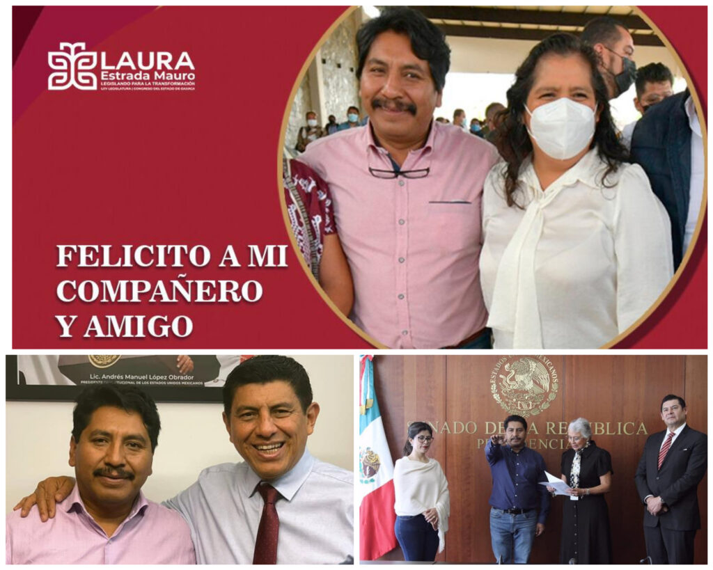 La diputada local de la 65 Legislatura de Oaxaca, Laura Estrada Mauro se congratula ante la recién toma de protesta del Senador Adolfo Gómez Hernández, “un hombre que siempre ha sido un líder de las causas justas, ahora desde la curul del Senado fortalecerá el trabajo legislativo en bienestar de todos los ciudadanos”, externó la legisladora.