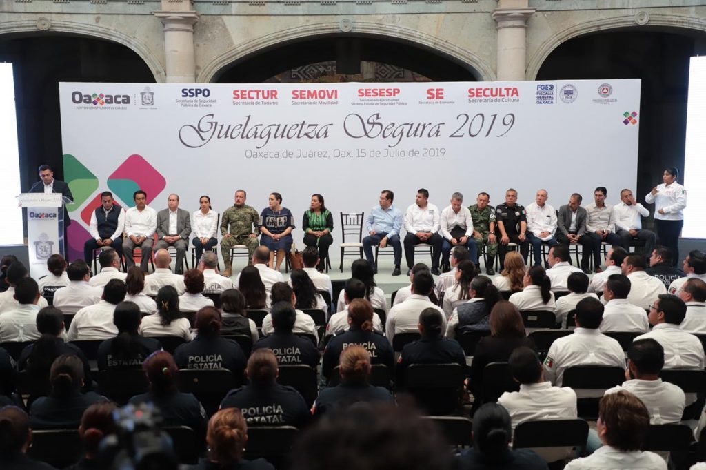 Oaxaca de Juárez, Oax. 15 de julio de 2019.Este lunes se puso en marcha el Operativo Guelaguetza Segura 2019, en donde se establecen las líneas de acción coordinadas entre dependencias gubernamentales, protección civil, policiales y de atención prehospitalaria de los tres órdenes de gobierno con el objetivo de salvaguardar la integridad física y patrimonial de las personas durante los eventos culturales, sociales, gastronómicos y turísticos en el marco de la máxima fiesta.