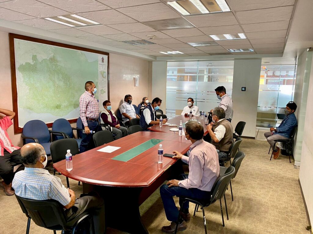 En atención a las instrucciones del secretario general de Gobierno (Segego), Francisco Javier García López, el presidente de la Junta de Conciliación Agraria, Rodrigo Jarquín Santos, en una estrecha coordinación con Florencio Merino Hernández de la Segob, Octaviano Robles Menéndez de la Procuraduría Agraria Oaxaca, Marcos Vinicio Canseco Sosa representante del RAN y Alberto Leobardo Barragán Sánchez del INPI, sostuvieron una reunión de trabajo para definir las acciones y alcanzar acuerdos en beneficio de ambas comunidades.