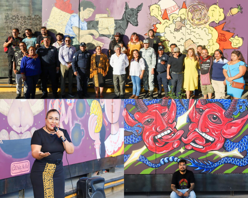 Durante la conferencia de presa del Gabinete de Seguridad en Palacio de Gobierno, la titular del SESESP Karina Barón Ortiz dio a conocer que el pasado 12 de julio, artistas de la Central de Abasto realizaron murales representativos de la cultura oaxaqueña, con el fin de embellecer este importante espacio comercial y fomentar el arte con enfoque de prevención, en quienes convergen diariamente en él.