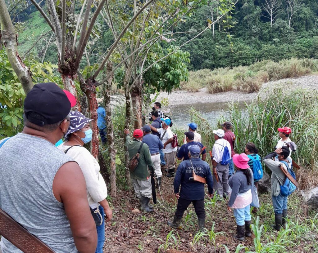 Personal técnico de la Junta de Conciliación Agraria, se trasladó junto con ambas Autoridades Agrarias para realizar los trabajos técnicos topográficos en la línea de colindancia comprendida de la mojonera “Hondura de Puerco” a la mojonera “El Manantial”
