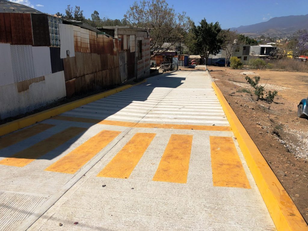 También se realizó la construccion de pavimento con concreto hidraulico en la Primera Privada de La Cañada en la colonia Guelaguetza de Santa María Atzompa, a través del programa de Mejoramiento Urbano y Centros de Población con una inversión de 499 mil 477.56, los cuales consistieron en 146 metros lineales de guarnición y 438 metros cuadrados de pavimento de concreto hidráulico de 15 centímetros de espesor, con lo que se beneficia directamente a 610 pobladores.